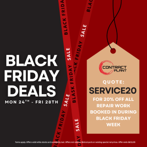 Black Friday at Contract Plant has arrived, and we’re delivering unbeatable savings across Parts and Service. From Monday 24th to Friday 28th November, you can take advantage of exclusive discounts on parts and repair work… but only while stocks and availability last!