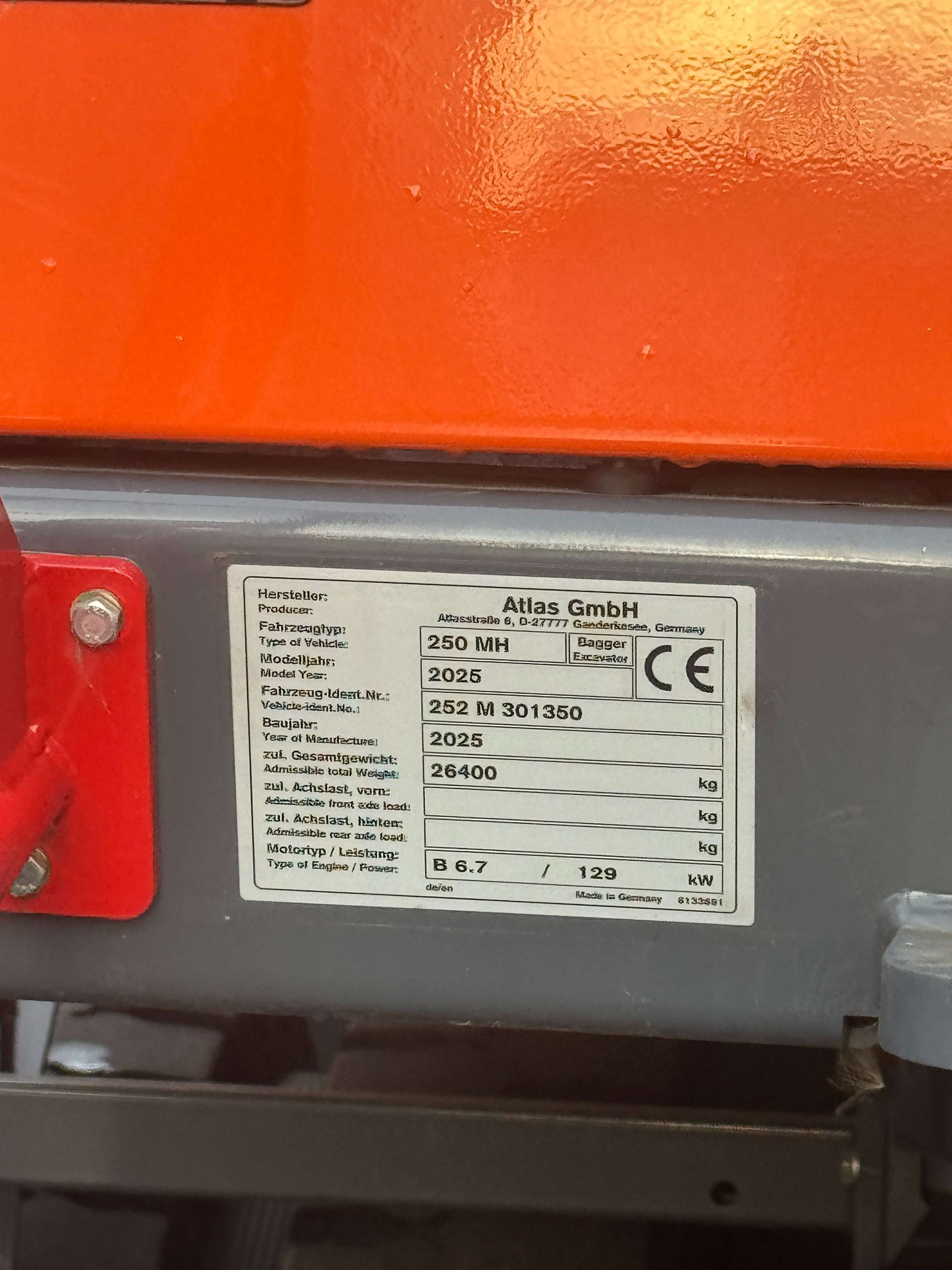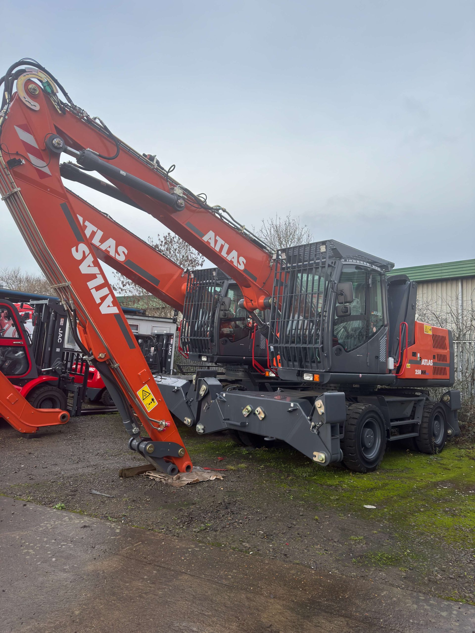 The Atlas 250MH material handler weighs in at 25 ton and offers a max range of 12.65 meters and cab raise height of 2.5 meters.