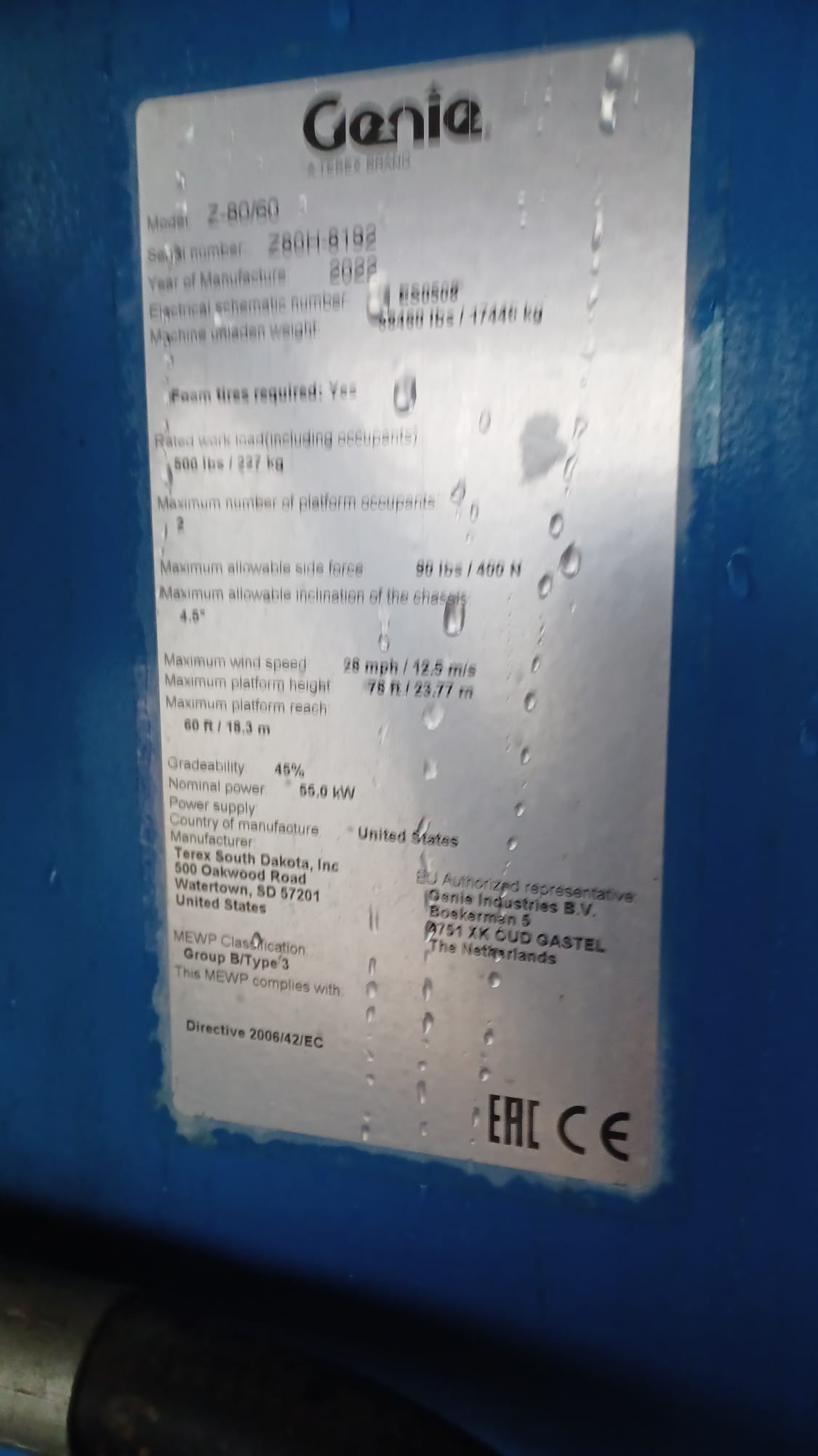 26M ARTICULATED BOOM, MAX WORK LOAD 227KG, 23.77M PLATFORM HEIGHT V. GOOD WORKING CONDITION. SOLD WORKING WITH NO VISIBLE LEAKS.
