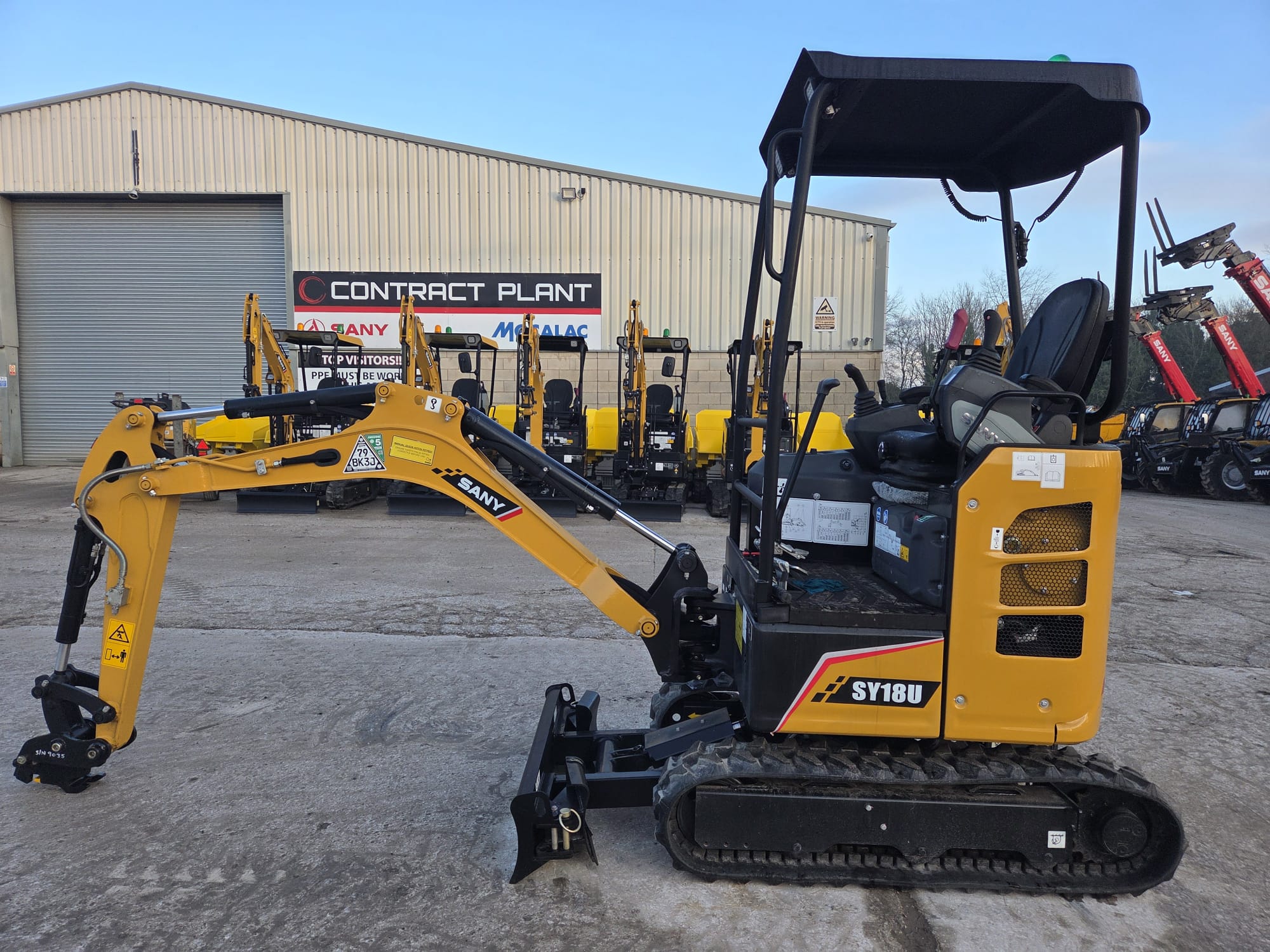 - Operator Environment: Designed for long hours, the SY18U features an ergonomic seating position, clear digital displays, and excellent visibility through the ROPS/FOPS canopy.