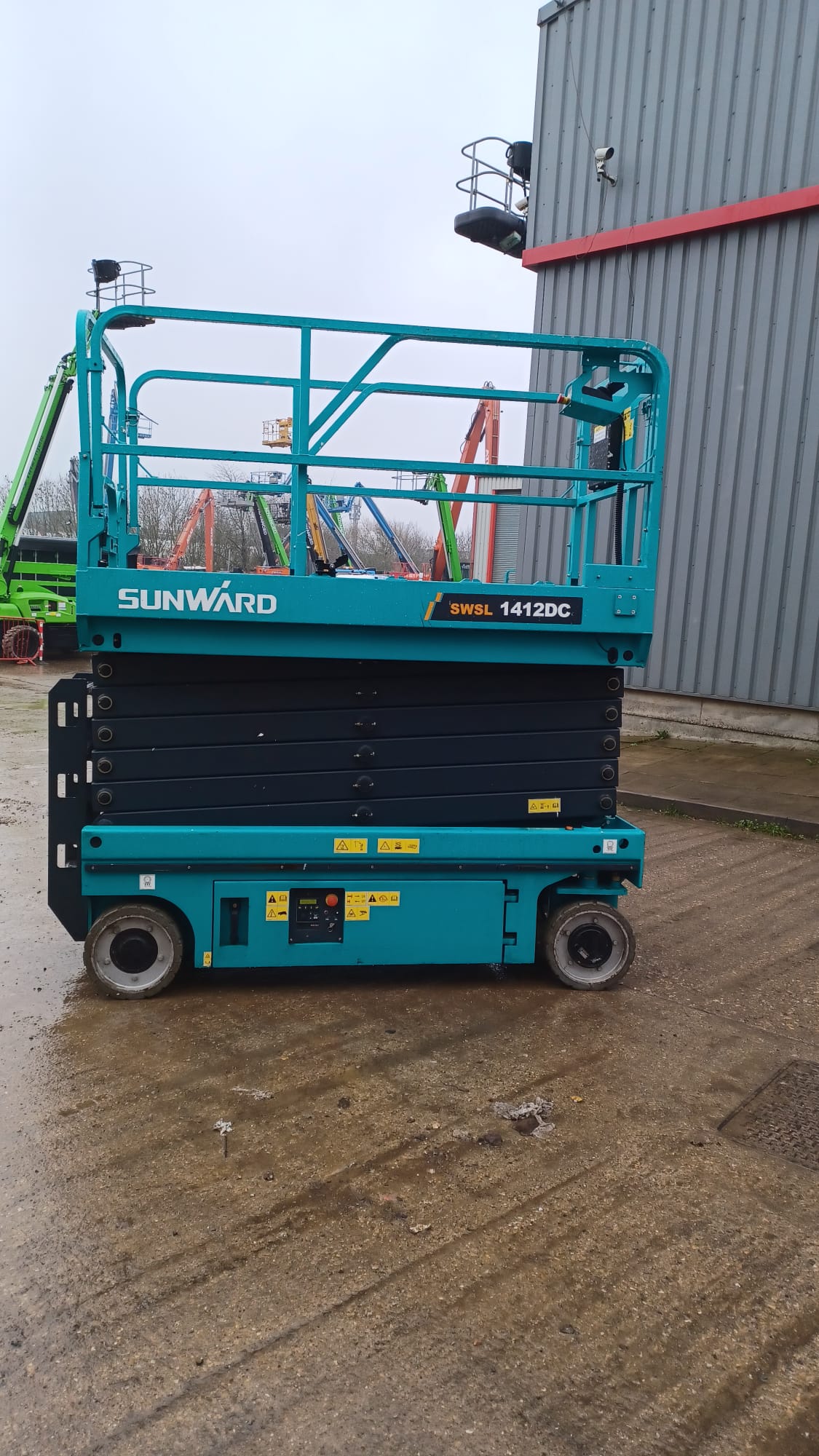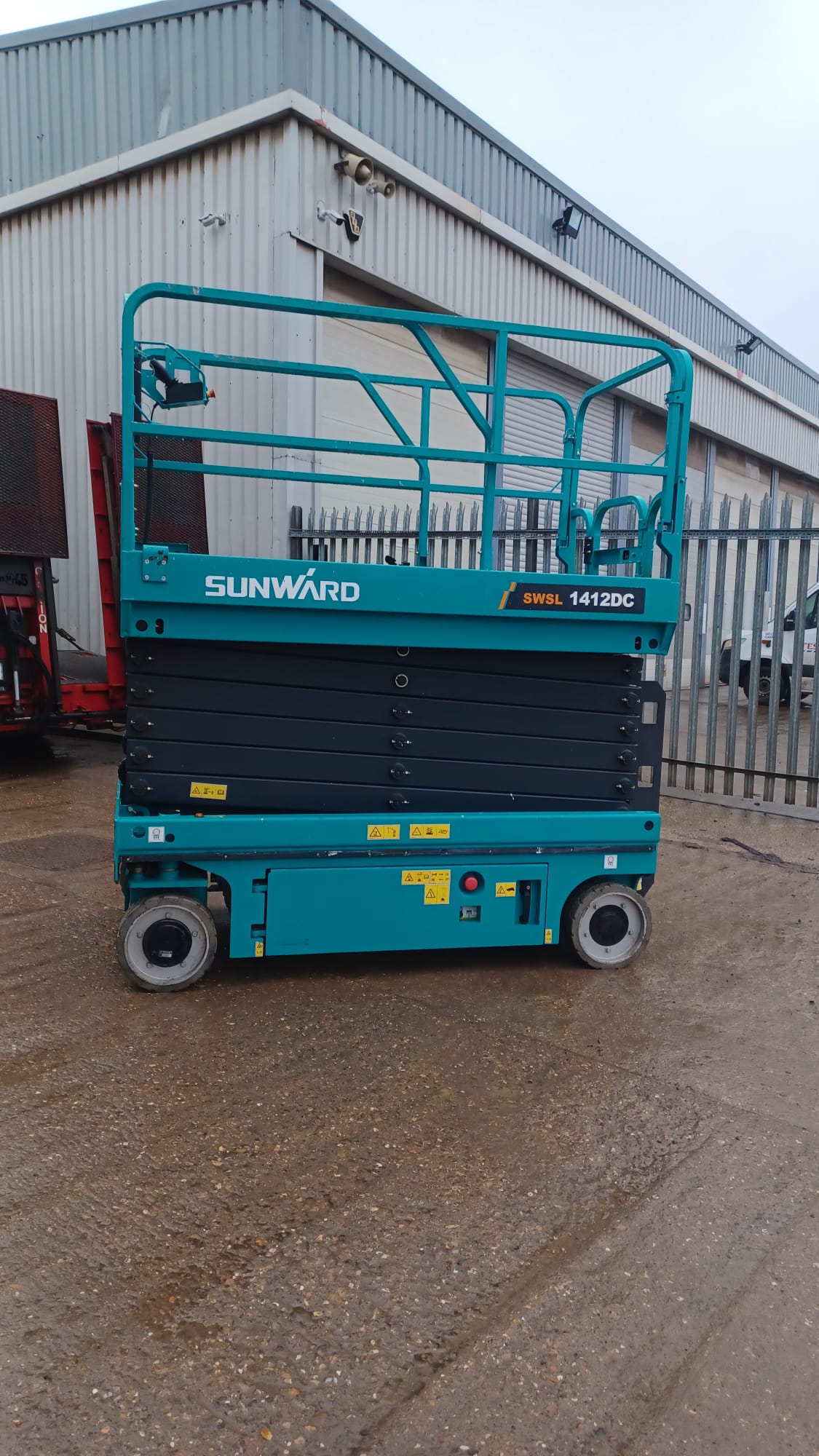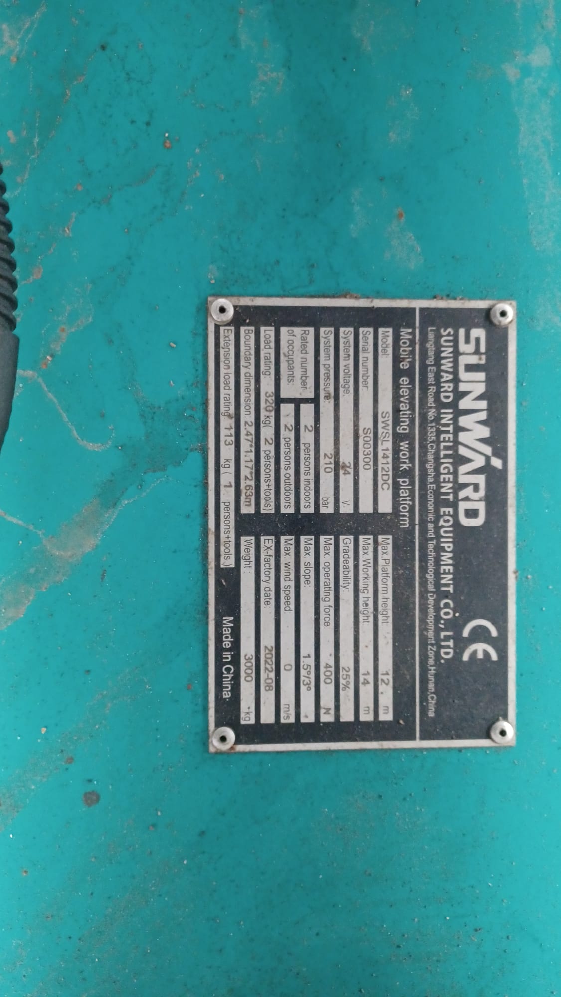 14M WORKING PLATFORM, 12M PLATFORM HEIGHT, 320KG LOAD RATE, ELECTRIC SLAB SCISSOR. SOLD WORKING WITH NO VISIBLE LEAKS.